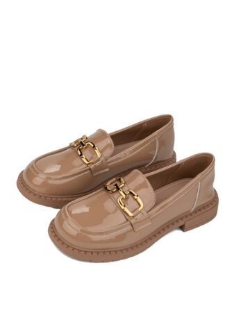 Лоферы женские карамель кожа лакированная демисезон Yalasou