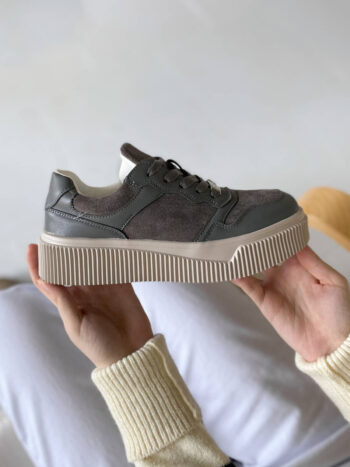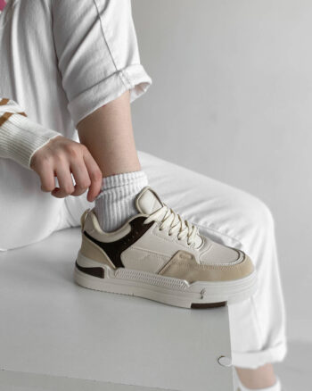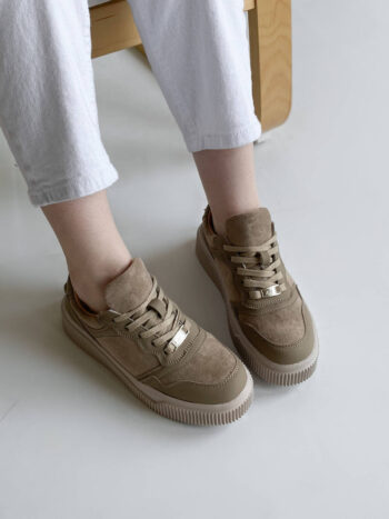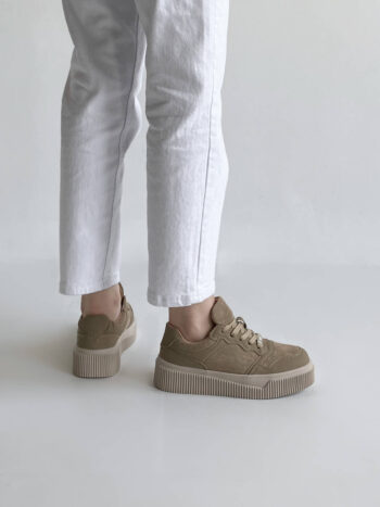Кроссовки классические женские бежевые экокожа демисезон Happy