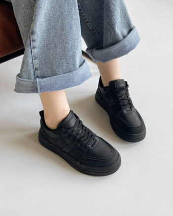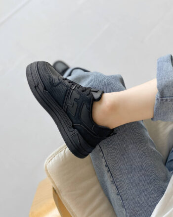 Ботинки женские черные экокожа демисезон на платформе Mei De Li