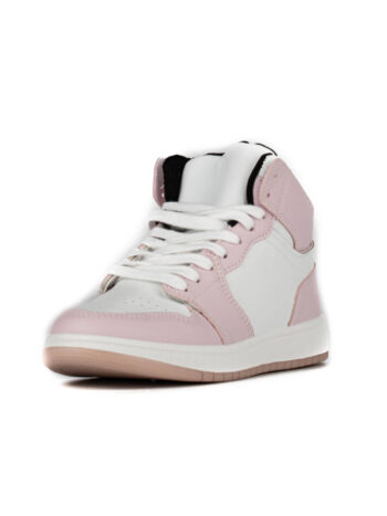 Кроссовки высокие хайтопы женские белые/розовые экокожа демисезон