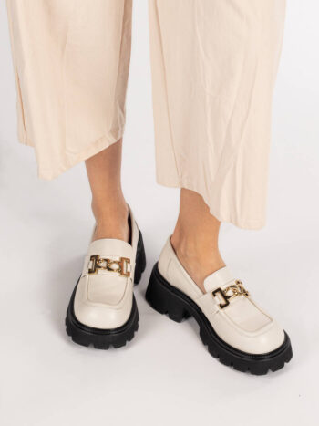 Лоферы женские белые кожаные на платформе демисезон