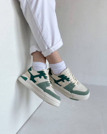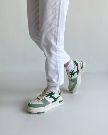 Кроссовки классические бело-зеленые экокожа демисезон
