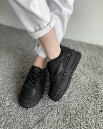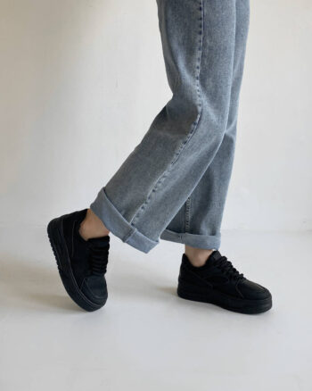 Кроссовки классические черные экокожа демисезон