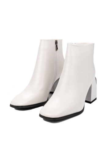 Ботильоны женские белые экокожа каблук устойчивый демисезон Parata