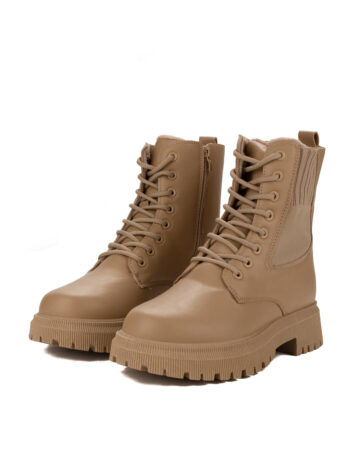 Ботинки женские бежевые экокожа демисезон платформа на шнуровке Mei De Li