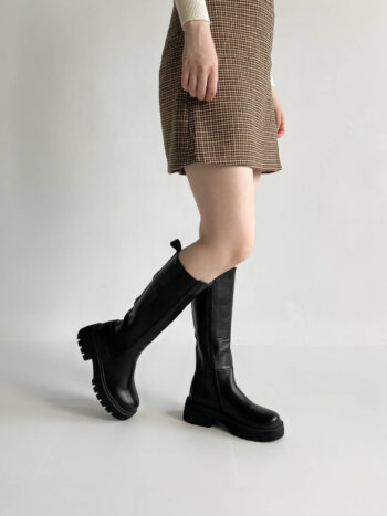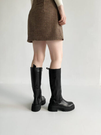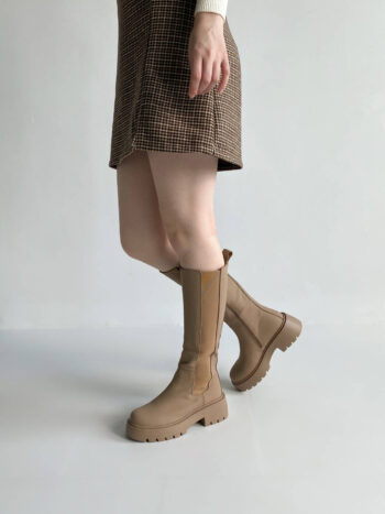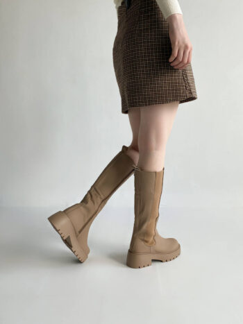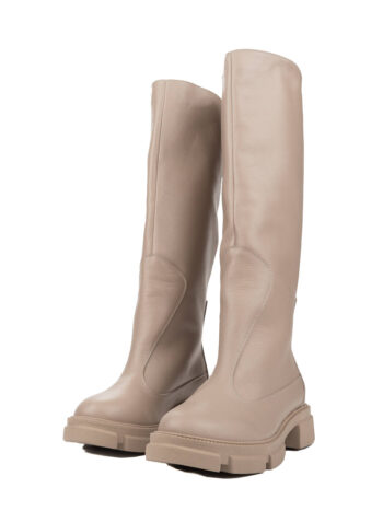 Сапоги трубы женские бежевые кожа еврозима Teona